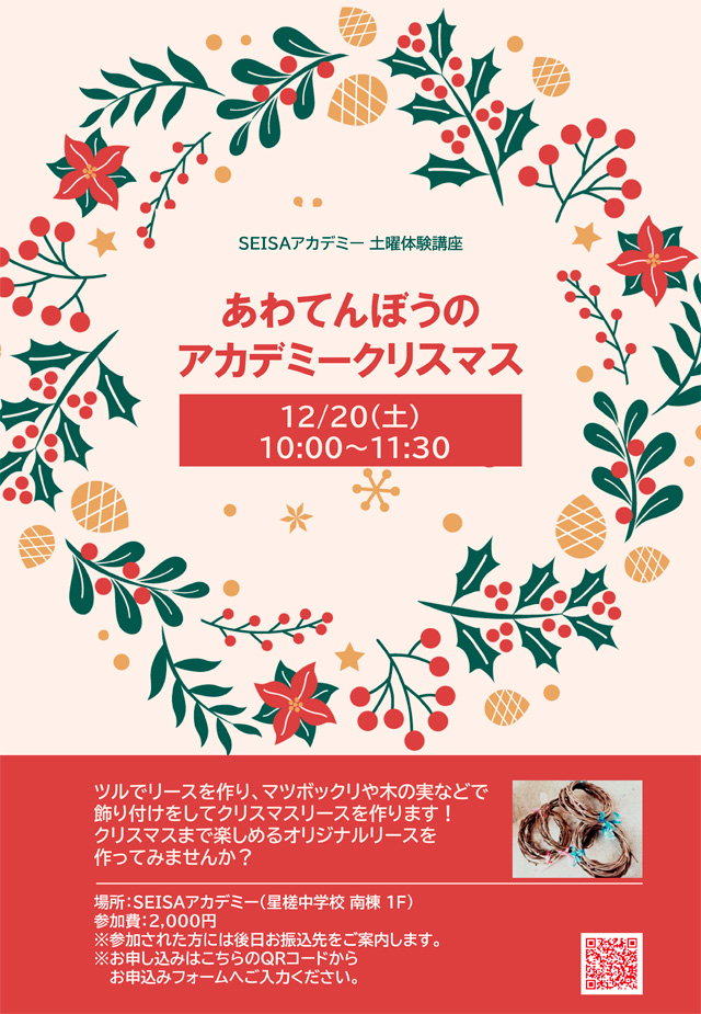 SEISAアカデミーへの出願条件として土曜体験講座と学校説明会への参加は必須となります。