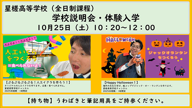 10月25日(土) 10:20〜 学校説明会・体験入学 開催