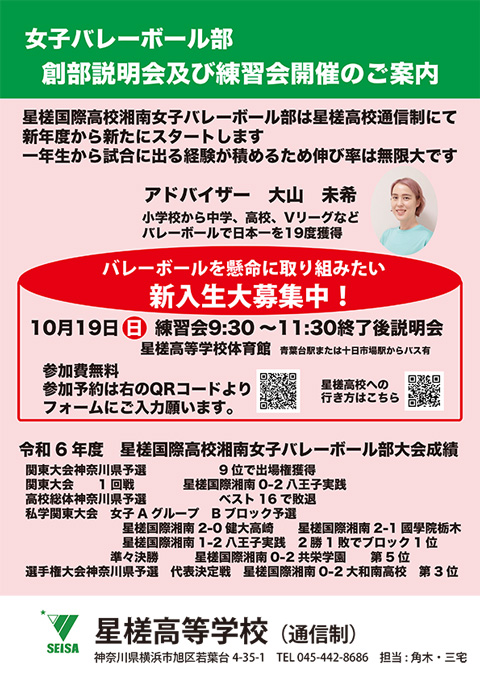 星槎国際高校湘南女子バレーボール部は星槎高校通信制にて新年度から新たにスタートします