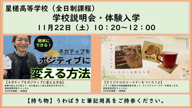11月22日(土) 10:20〜 学校説明会・体験入学 開催